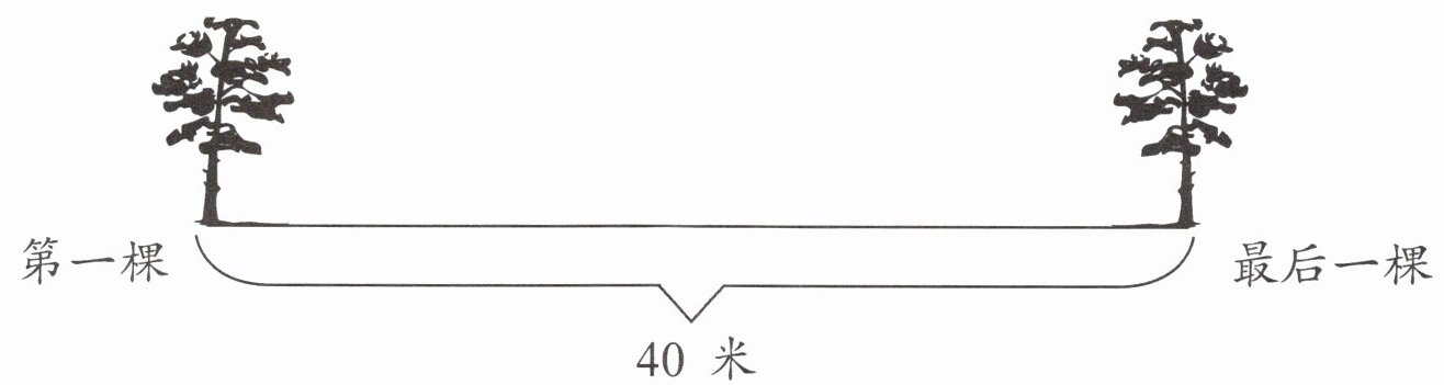 绿化队在全长 40 米的小路一侧植树。每隔 5 米种一棵,从头到尾一共要种多少棵树?可以画图解决。