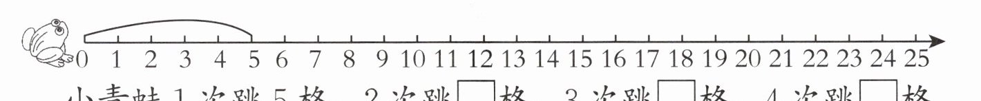 小青蛙1次跳5格,2次跳□格,3次跳□格,4次跳□格。