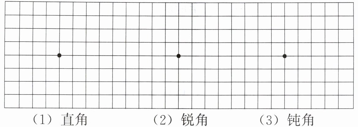 (3) 钝角:从点出发,画两条线,夹角大于90度且小于180度,例如一条水平向右,一条斜向上与水平线约120度。