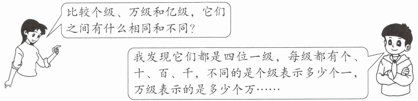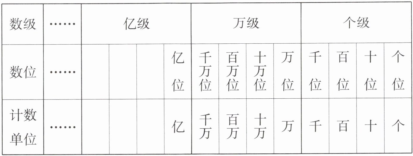 数位:千亿位、百亿位、十亿位;计数单位:千亿、百亿、十亿。相同:四位一级,每级有个、十、百、千。不同:个级表多少个一,万级表多少个万,亿级表多少个亿。