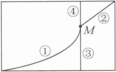 6. 王强在游泳池里游泳,现在$M$处,他想尽快游上岸,右图中,路线( )能尽快游上岸。
