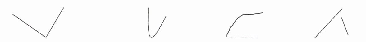1. 判断下面图形是不是角,是的在括号内打“√”,不是的打“×”。