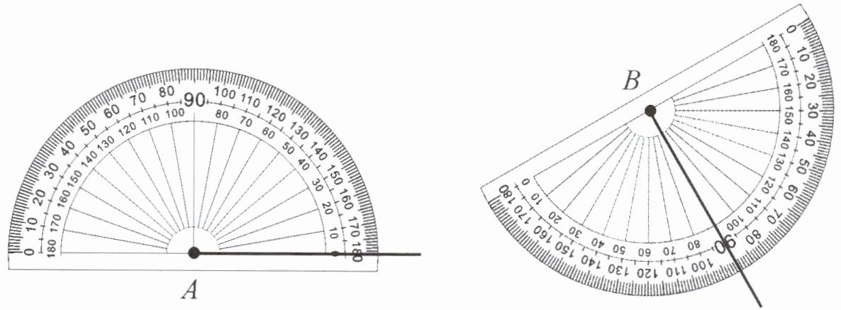 画 $90^{\circ}$ 角:让量角器中心和点 $B$ 重合,$0^{\circ}$ 刻度线与已知射线重合,在量角器 $90^{\circ}$ 刻度线处标记一个点,拿开量角器,以点 $B$ 为端点,通过标记的点画射线,得到以 $B$ 为顶点的 $90^{\circ}$ 角。