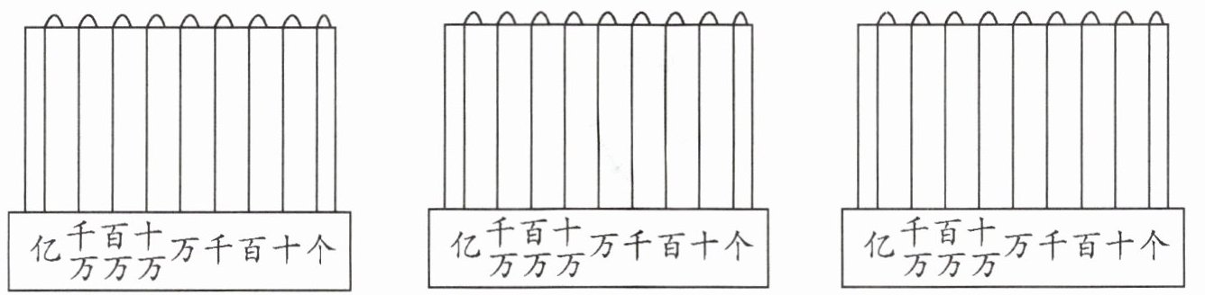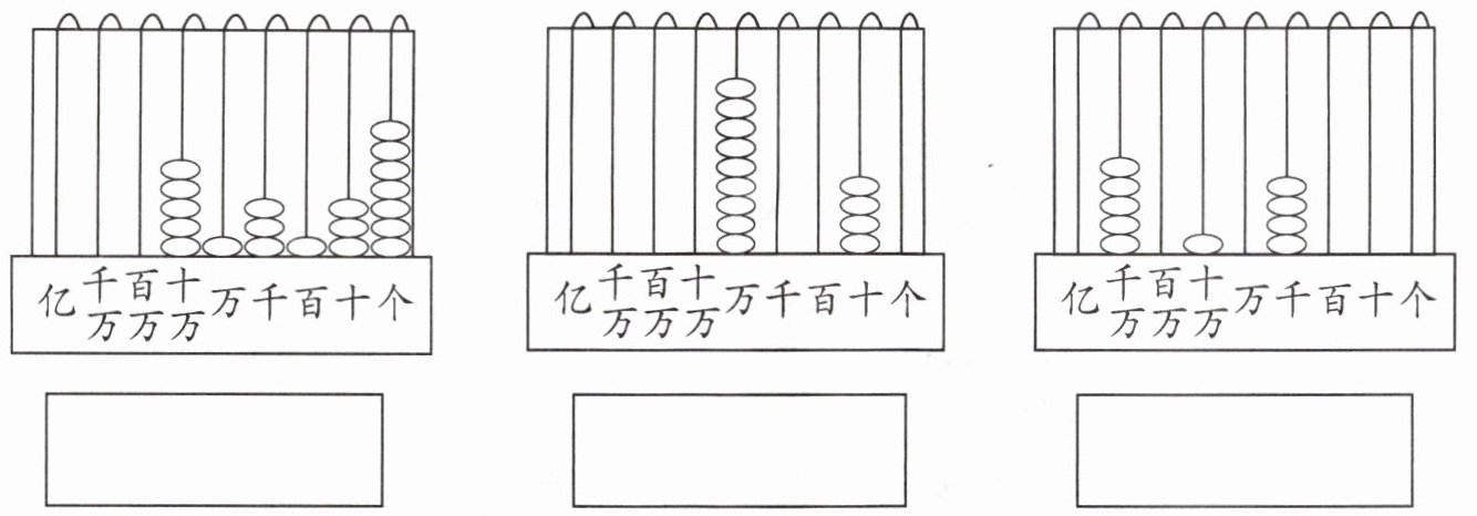 (3)在第三个计数器的千万位拨1颗珠子,十万位拨2颗珠子,十位拨0颗珠子,个位拨3颗珠子,其余数位拨0颗珠子。