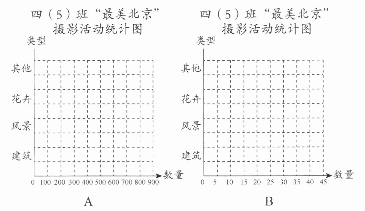3. 下面是某小学四(5)班开展“最美北京”摄影活动的统计表。