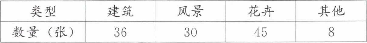 | 数量(张) | 36 | 30 | 45 | 8 |