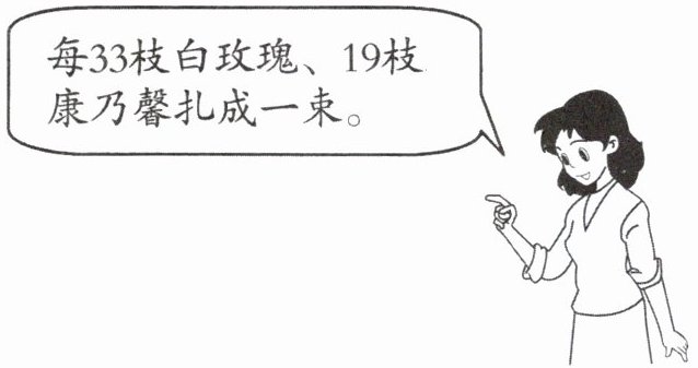 某花店有 215 枝白玫瑰、171 枝康乃馨。