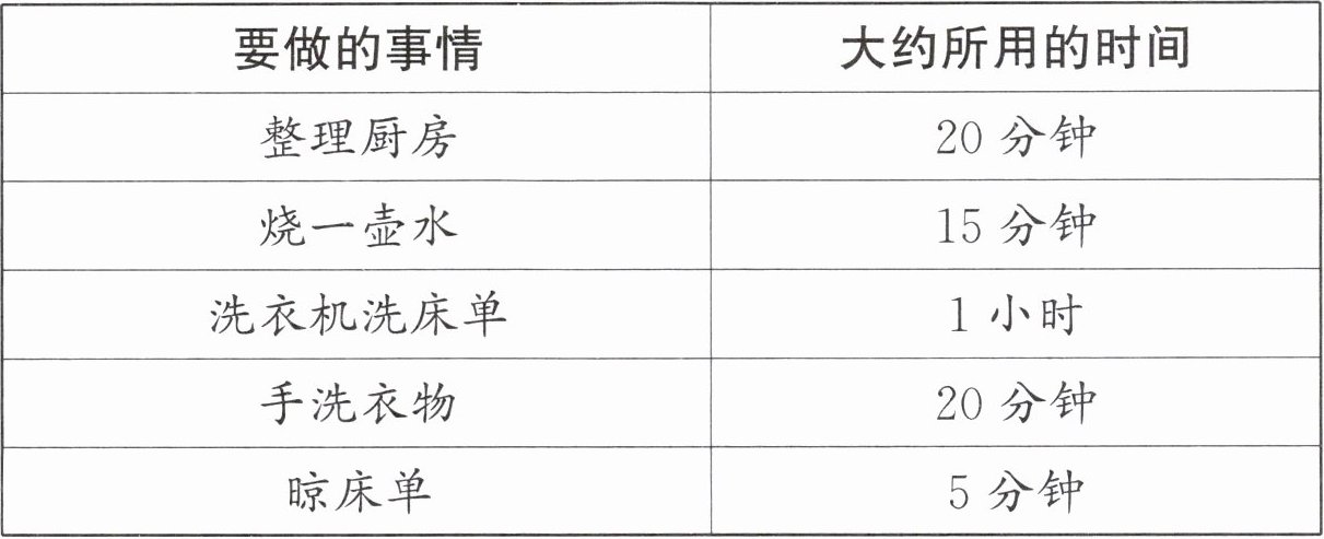 (1)用洗衣机洗衣服用时 15 分钟,晾衣服用时 5 分钟。