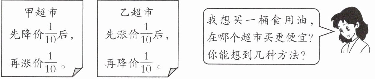 |先降价 $\frac{1}{10}$ 后,再涨价 $\frac{1}{10}$。|先涨价 $\frac{1}{10}$ 后,再降价 $\frac{1}{10}$。|