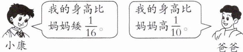① 设妈妈身高为$x$厘米,$x - \frac{1}{16}x = 150$,$\frac{15}{16}x = 150$,$x = 150 ÷ \frac{15}{16} = 160$。答:妈妈身高160厘米。