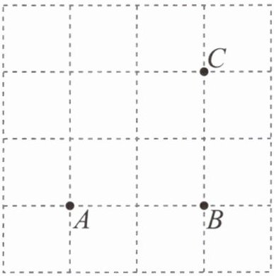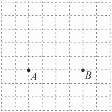 5. 以OA(或OB)为半径画圆,A、B两点即在圆上。(注:图中A、B水平相距4格,垂直平分线为AB中垂线,圆心O可在中垂线上选取,如AB中点正上方2格处,此时半径为√(2²+2²)=2√2格,按格点作图规范画出圆并标注O)