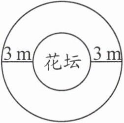 (2)一个圆形花坛的周长是 15.7 m,现进行扩建,将半径延长 3 m(如右图)。扩建后花坛的周长比原来增加了多少米?