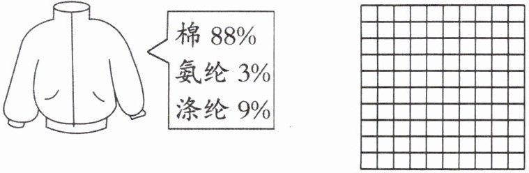 棉占$88\%$,总方格数为$10×10 = 100$个,$88\%$就是$88$个方格涂红色;