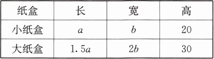 16. 两种规格的长方体纸盒尺寸(单位:cm)如下表所示: