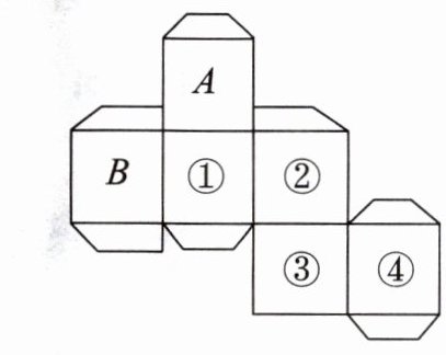 13. 如图是一个粉笔盒的表面展开图,若字母A表示粉笔盒的上盖,B表示侧面,则底面在表面展开图中的位置是( ).