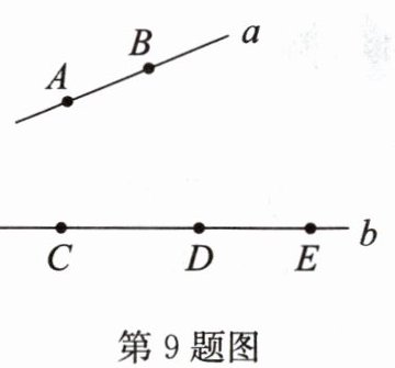 9. 如图,已知点A,B在直线a上,点C,D,E在直线b上. 以点A,B,C,D,E中的任意三点作为三角形的顶点,可以组成的三角形共有