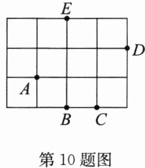 10. 如图,由12个边长为1的小正方形拼成一个长方形,点A,B,C,D,E分别在小正方形的顶点上,过其中任意三点画三角形,一共可以画