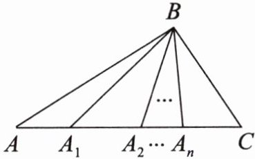 11. 如图,在△ABC中,$A_{1},A_{2},A_{3},…,A_{n}$为AC边上不同的n个点,首先连接$BA_{1}$,图中出现了3个不同的三角形,再连接$BA_{2}$,图中便有6个不同的三角形……