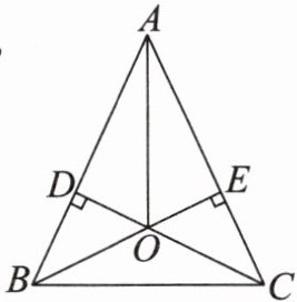 6. 如图,BE和CD是$△ABC$的高,它们相交于点O,且$BE= CD$,则图中共有(