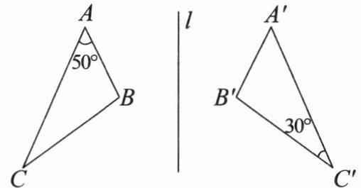 8. 如图,$\triangle ABC与\triangle A'B'C'关于直线l$对称,则$\angle B= $(