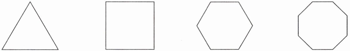 10. 下列图形均为正多边形,画出它们的所有对称轴,并填空.