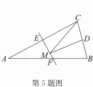 5. 如图,等腰三角形 ABC 的底边 BC 长为 4,$ \triangle ABC $ 的面积是 16,腰 AC 的垂直平分线 EF 分别交 AC,AB 边于点 E,F. 若 D 为 BC 边的中点,M 为线段 EF 上一动点,则 $ \triangle CDM $ 的周长的最小值为