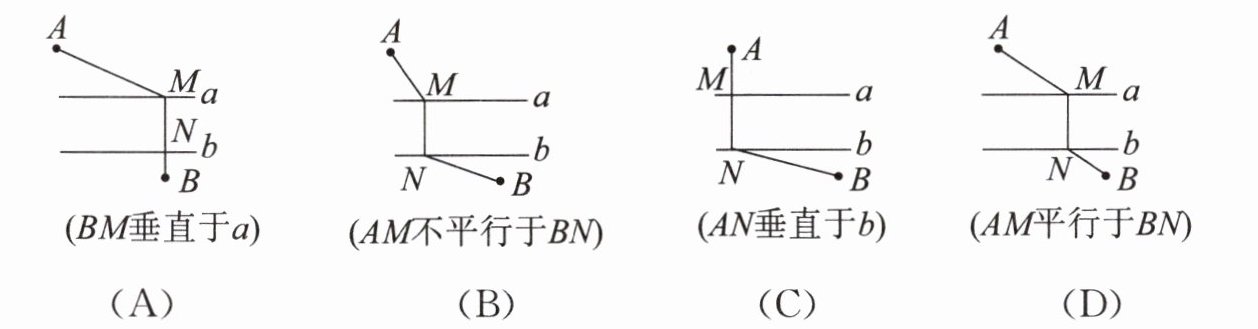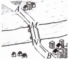 3. 如图,A 和 B 两地在一条河的两岸,现要在河上造一座桥 MN,使从点 A 到 B 的路径 $ A - M - N - B $ 最短的是(假定河的两岸是平行直线,桥要与河岸垂直)(
