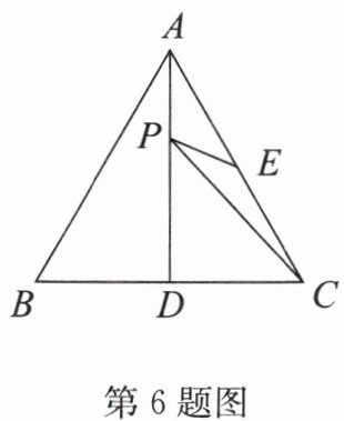 6. 如图,$ \triangle ABC $ 是等边三角形,AD 是 BC 边上的高,E 是 AC 的中点,P 是 AD 上的一个动点. 当 PC 与 PE 的和最小时,$ \angle ECP $ 的度数是__________.