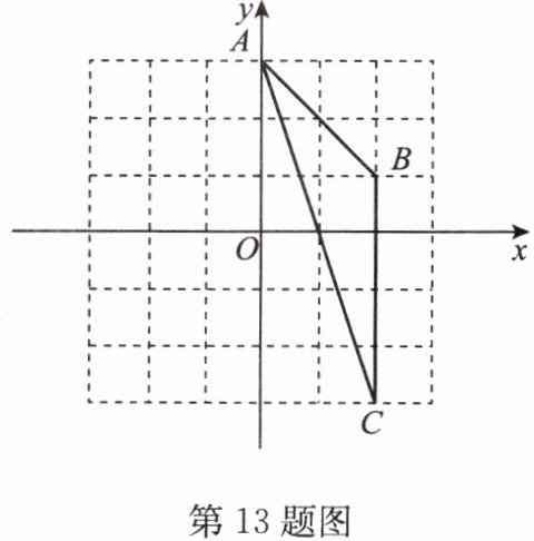 13. 如图,小正方形的边长均为1,则△ABC的外心的坐标是______;点D(-4,-5)在△ABC的外接圆______(填“内”“外”或“上”).
