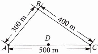 11. 如图,A,B,C是某社区的三栋楼,若在AC中点D处建一个5G基站,其覆盖半径为300 m,则这三栋楼中在该5G基站覆盖范围内的是( ).