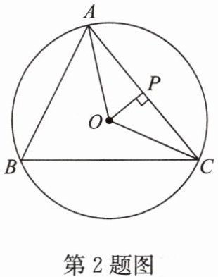 2. 如图,$\odot O$ 是 $\triangle ABC$ 的外接圆,$\angle B = 60^{\circ}$,$ OP \perp AC $ 于点 $ P $. 若 $ OP = 2\sqrt{3}$,则 $\odot O$ 的半径为( ).