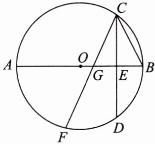 14. 如图,$ AB $ 是 $\odot O$ 的直径,弦 $ CD \perp AB $ 于点 $ E $,$ F $ 是 $\odot O$ 上一点,$ D $ 是 $\overset{\frown}{BF}$ 的中点,连接 $ CF $ 交 $ OB $ 于点 $ G $,连接 $ BC $.