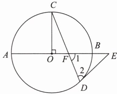 11. 如图,在⊙O中,AB是直径,点C在⊙O上,OC⊥AB,弦CD与OB交于点F,在AB延长线上找一点E,连接ED,使得∠1= ∠2.