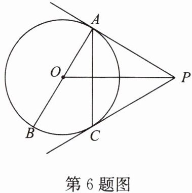 6. 如图,PA,PC是⊙O的切线,A,C为切点. 若∠APC= 60°,PO= 5√{3},则直径AB的长是____.