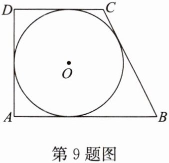 9. 如图,四边形ABCD外切于⊙O,若AB= 16,CD= 10,则四边形ABCD的周长为( ).