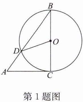 1. 如图,AC 是⊙O 的切线,切点为 C,BC 是⊙O 的直径,AB 交⊙O 于点 D,连接 OD. 若∠BAC= 55°,则∠COD 的大小为( ).