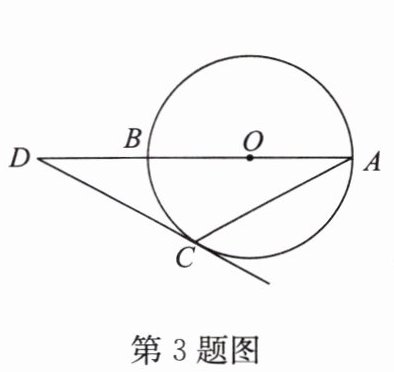 3. 如图,AB 是⊙O 的直径,点 D 在 AB 的延长线上,DC 切⊙O 于点 C,若∠A= 30°,OD= 4,则 DC 的长是( ).