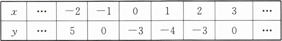 | $y$ | …$$ | $5$ | $0$ | $-3$ | $-4$ | $-3$ | $0$ | …$$ |