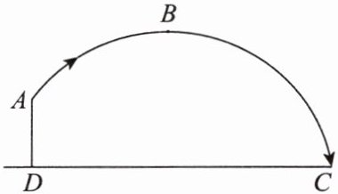 7. 某校九年级进行体育测试,其中一项是双手扔实心球. 已知一名学生扔出的实心球所经过的路线是某个二次函数图象的一部分,且实心球出手处 $ A $ 点距离地面的高度为 $ 2 m $,当实心球运动的水平距离为 $ 4 m $ 时,达到最大高度 $ 4 m $ 的 $ B $ 处(如图),请计算该学生把实心球扔出了多远.