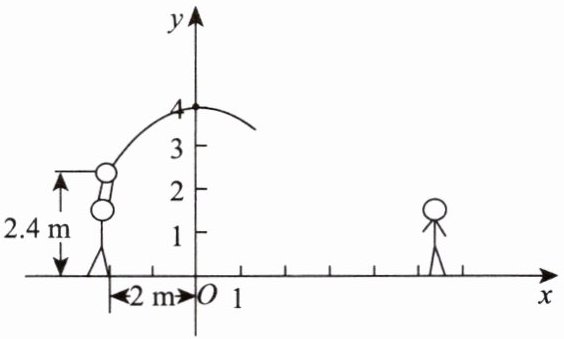 6. 某次足球比赛中,队员甲在前场给队友乙掷界外球. 如图所示,足球出手时的高度为 $ 2.4 m $,足球运动的路线是抛物线,当足球运动的水平距离为 $ 2 m $ 时,足球达到最大高度 $ 4 m $. 请你根据图中所建坐标系,求抛物线的表达式.