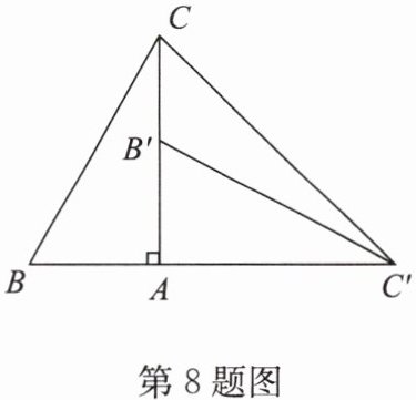 8. 如图,在 $ \triangle ABC $ 中,$ \angle BAC = 90^{\circ} $,$ \angle B = 60^{\circ} $,$ \triangle AB'C' $ 可以由 $ \triangle ABC $ 绕点 $ A $ 顺时针旋转 $ 90^{\circ} $ 得到(点 $ B' $ 与点 $ B $ 是对应点,点 $ C' $ 与点 $ C $ 是对应点),连接 $ CC' $,则 $ \angle CC'B' $ 的度数为______.
