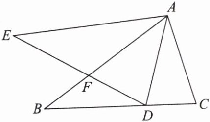 6. 如图,在$\triangle ABC$中,$AB > AC$,将$\triangle ABC以点A$为旋转中心顺时针旋转,得到$\triangle AED$,使点$D在BC$上,$DE交AB于点F$. 如下结论中: