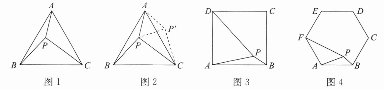 (2)如图4,在正六边形$ABCDEF内有一点P$,且$PA = 2$,$PB = 1$,$PF = \sqrt{13}$,则$\angle APB = $______,$AB = $______.