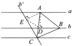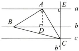 (1)如图,直线$a // b // c$,分别在$a$,$b$,$c上找点A$,$B$,$C$,使$\triangle ABC$是等腰直角三角形(要求作出符合题意的一个$\triangle ABC$即可).
