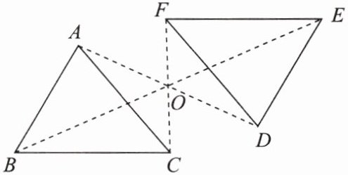 6. 如图,$\triangle DEF$ 是由 $\triangle ABC$ 绕点 $O$ 旋转 $180^{\circ}$ 得到的,则下列结论:①点 $A$ 与点 $D$ 是对应点;② $BO = EO$;③ $\angle ACB= \angle FDE$;④ $AB// DE$. 其中正确的是______(填所有正确的序号).