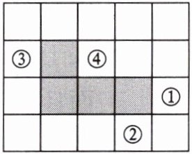 10. 在方格纸中,选择标有序号①②③④中的一个小正方形涂黑,与图中阴影部分构成中心对称图形,涂黑的小正方形的序号是( ).
