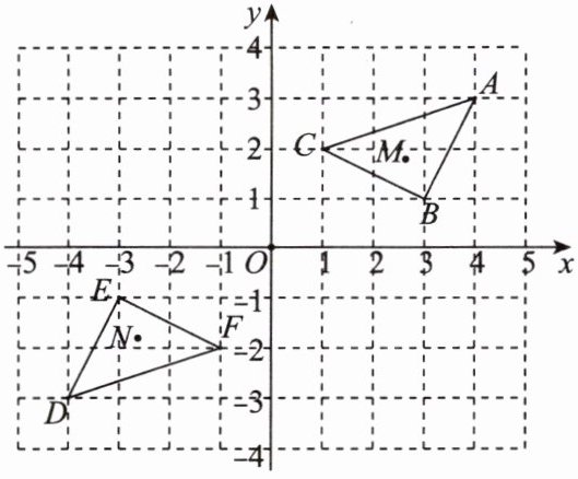 7. 如图,$\triangle DEF$ 是 $\triangle ABC$ 经过某种变换后得到的图形. $\triangle ABC$ 内任意一点 $M$ 的坐标为 $(x,y)$,点 $M$ 经过这种变换后得到点 $N$,点 $N$ 的坐标是( ).