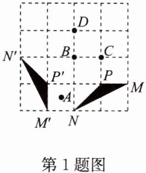 1. 如图,在正方形网格中,将△MPN绕某一点旋转某一角度得到了△M'P'N',则旋转中心可能是点______(填字母A,B,C,D之一).