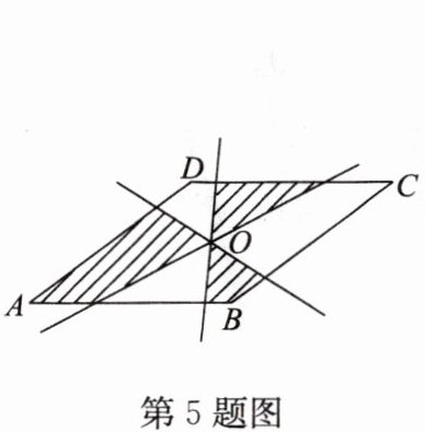 5. 如图,四边形ABCD是菱形,点O是两条对角线的交点,过点O的三条直线将菱形分成阴影部分和空白部分. 若菱形的两条对角线长分别为6和18,则阴影部分的面积为______.