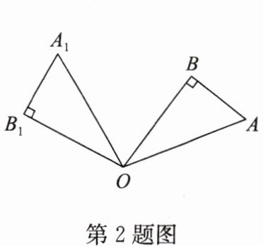 2. 如图,在Rt△OAB中,∠AOB= 30°,将△OAB绕点O逆时针旋转100°得到$△OA_1B_1,$则$∠A_1OB= $_________°.